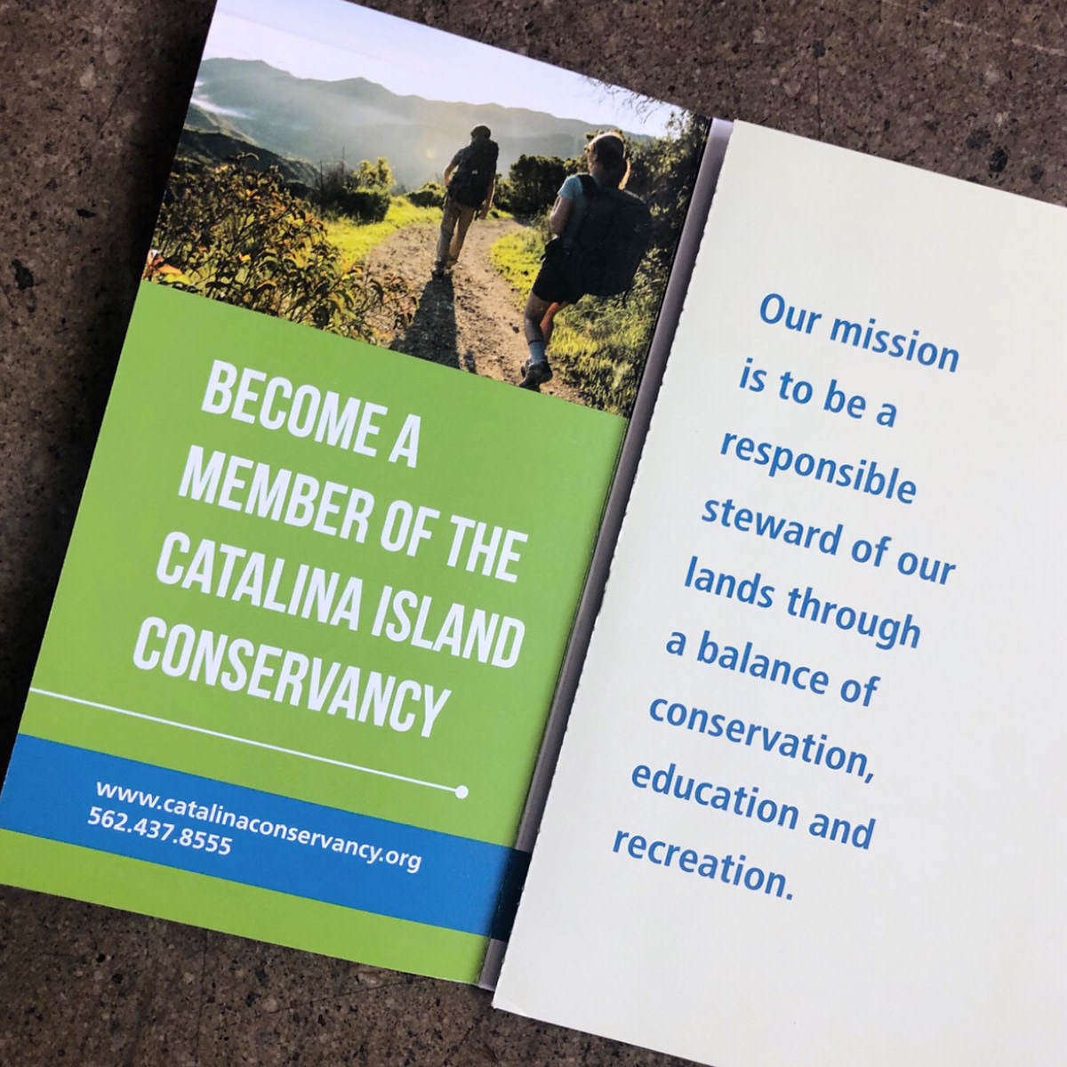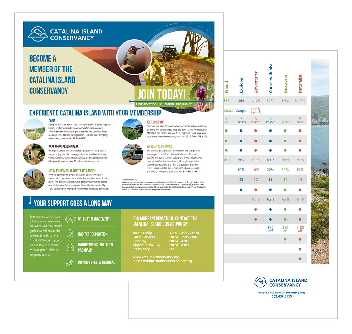 Soft re-brand of membership and marketing collateral for Catalina Island Conservancy. Work includes brochures, membership forms, rack-cards, website graphics, trail map, and extends into all CIC related materials to date.